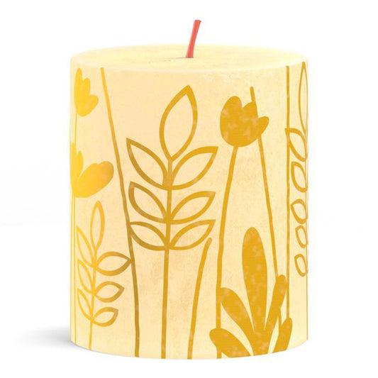 Vela Pilar Rústica Estampada 80x68mm Amarela 35h