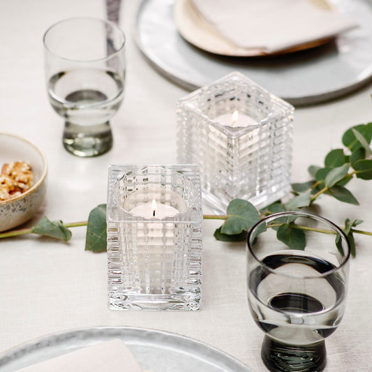 Porta Velas Vidro Quadrado Canelado 76x58mm Transparente