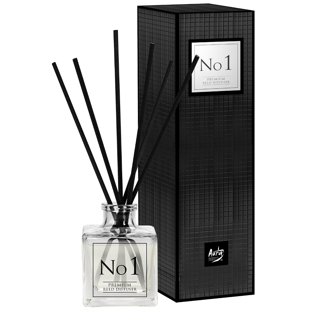 Difusor aromático Premium Nº 1, uma fragrância sensual num frasco exclusivo e intemporal. Nº 1 combina aromas quentes de madeira com baunilha. A fragrância dura até 8 semanas. Pode combinar este ambientador com a vela perfumada Nº 1, de dois pavios, da mesma coleção e dar um toque de requinte ao seu espaço.
