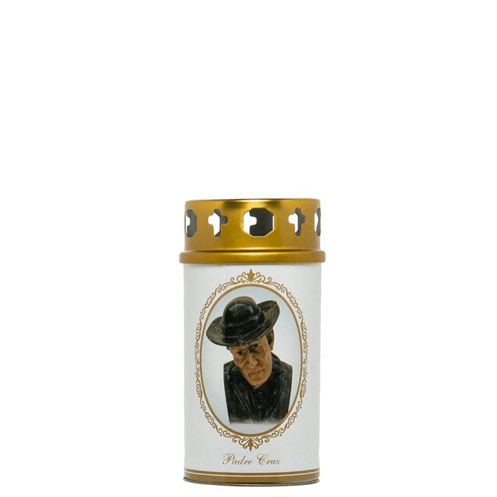 Círio Vela religiosa em copo de papiro, com imagem Padre Cruz, para utilização em cemitério ou cerimónia religiosa. O copo contém uma oração alusiva ao respetivo Santo. A tampa protege a vela do vento e da chuva. Círio fabricado com cera refinada de primeira qualidade.