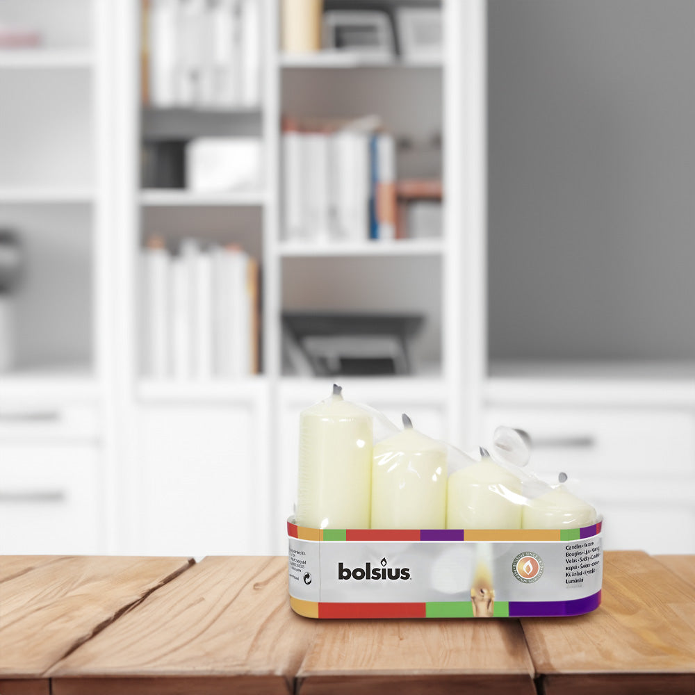 Vela pilar na cor marfim. Uma vela decorativa clássica e intemporal que se enquadra em qualquer interior. Esta vela fica maravilhosa em suportes decorativos, bandejas com espelho e castiçais. Combinada com velas pilar de outros tamanhos e cores poderá dar um toque de requinte à sua casa. Construa um ambiente que reflita a sua personalidade. Devido ao seu pavio, mantém uma chama uniforme, perfeita e sem fumo.