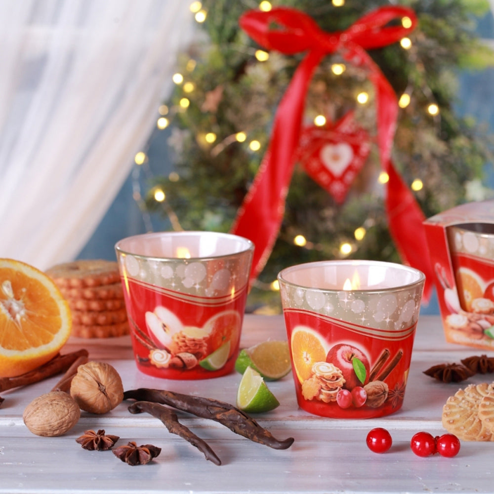 Vela aromática em copo de vidro com motivos decorativos. A combinação única de luz, sombra e uma fragância cuidadosamente selecionada, criam um ambiente perfeito para o seu lar.
