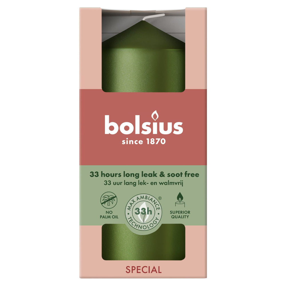 Vela pilar na cor verde metálico. Uma vela decorativa clássica e intemporal que se enquadra em qualquer interior. Esta vela fica maravilhosa em suportes decorativos, bandejas com espelho e castiçais. Combinada com velas pilar de outros tamanhos e cores poderá dar um toque de requinte à sua casa. Construa um ambiente que reflita a sua personalidade. Devido ao seu pavio, mantém uma chama uniforme, perfeita e sem fumo.
