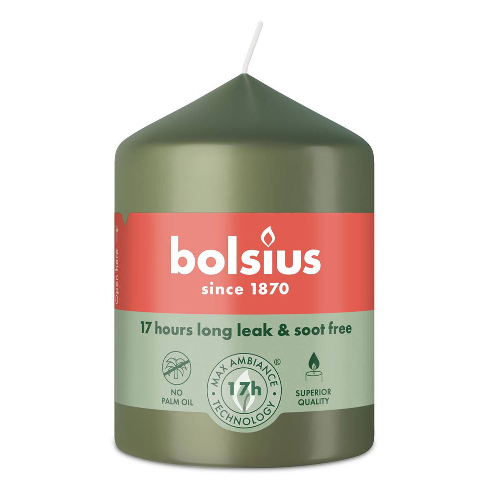 Vela pilar em verde seco. Uma vela decorativa clássica e intemporal que se enquadra em qualquer interior. Esta vela fica maravilhosa em suportes decorativos, bandejas com espelho e castiçais. Combinada com velas pilar de outros tamanhos e cores poderá dar um toque de requinte à sua casa. Construa um ambiente que reflita a sua personalidade. Devido ao seu pavio, mantém uma chama uniforme, perfeita e sem fumo.