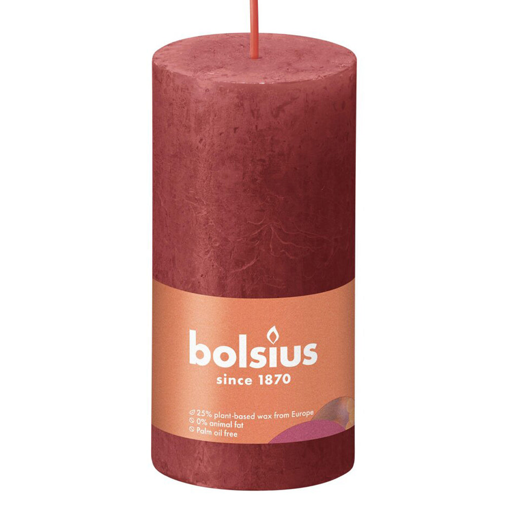 Torne cada ocasião num momento especial! Com a luminosidade das velas pode criar um ambiente de requinte e aconchegante na sua casa. Feitas com amor pelas pessoas e pelo planeta, sem óleo de palma e com extratos 100% naturais, poderá encontrar na nossa coleção Bolsius velas decorativas rústicas de diferentes tamanhos e em várias cores. Devido ao seu pavio em algodão, mantém uma chama perfeita e sem fumo por cerca de 30 horas. A vela pilar rústica em vermelho delicado, com acabamento mate, inspirada na natureza, traz brilho à sua casa e enquadra-se em qualquer decoração.
