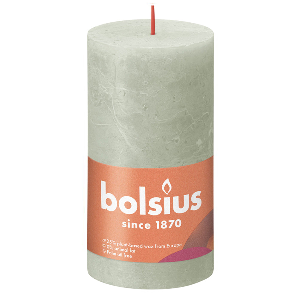 Torne cada ocasião num momento especial! Com a luminosidade das velas pode criar um ambiente de requinte e aconchegante na sua casa. Feitas com amor pelas pessoas e pelo planeta, sem óleo de palma e com extratos 100% naturais, poderá encontrar na nossa coleção Bolsius velas decorativas rústicas de diferentes tamanhos e em várias cores. Devido ao seu pavio em algodão, mantém uma chama perfeita e sem fumo por cerca de 60 horas. A vela pilar rústica em verde, com acabamento mate, inspirada na natureza, traz brilho à sua casa e enquadra-se em qualquer decoração.