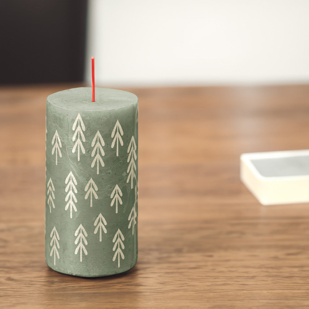 Vela Pilar Rústica Natal 130x68mm Verde Seco 60h