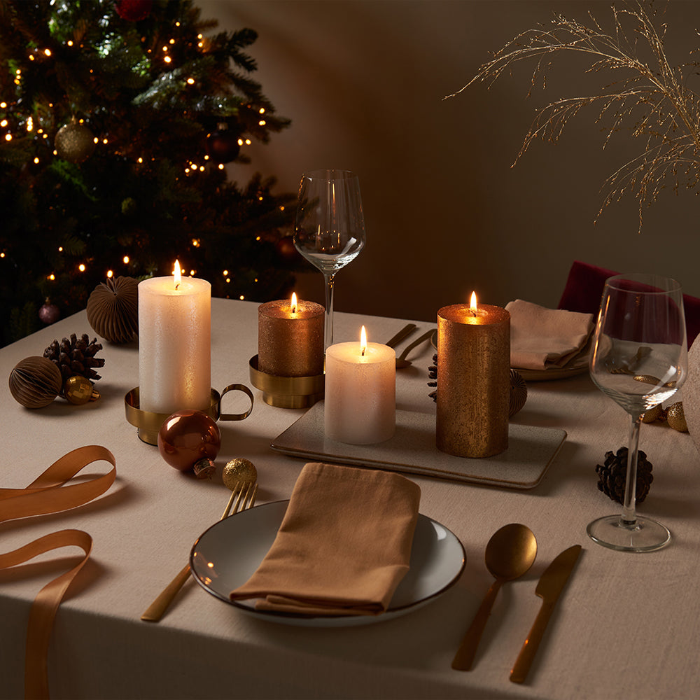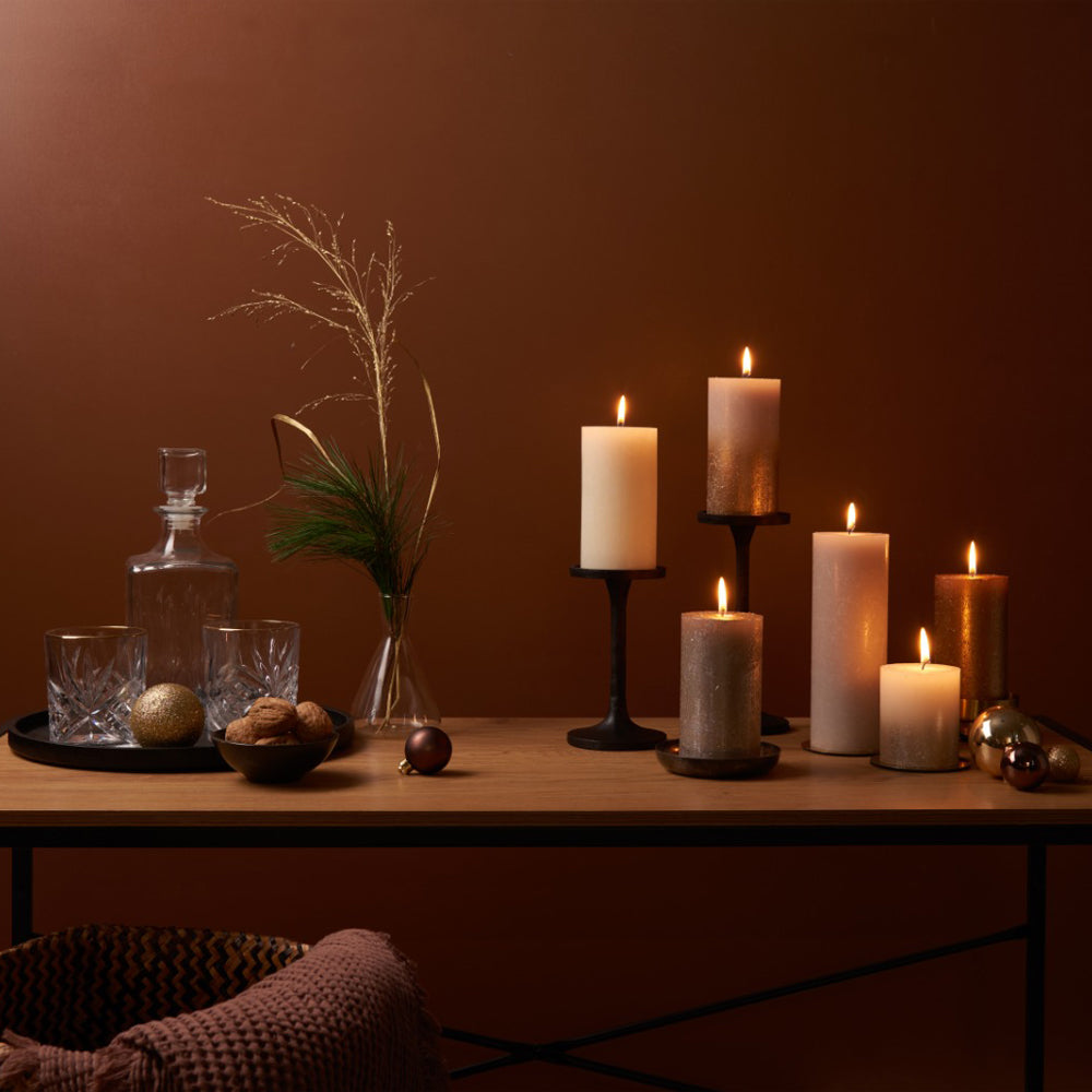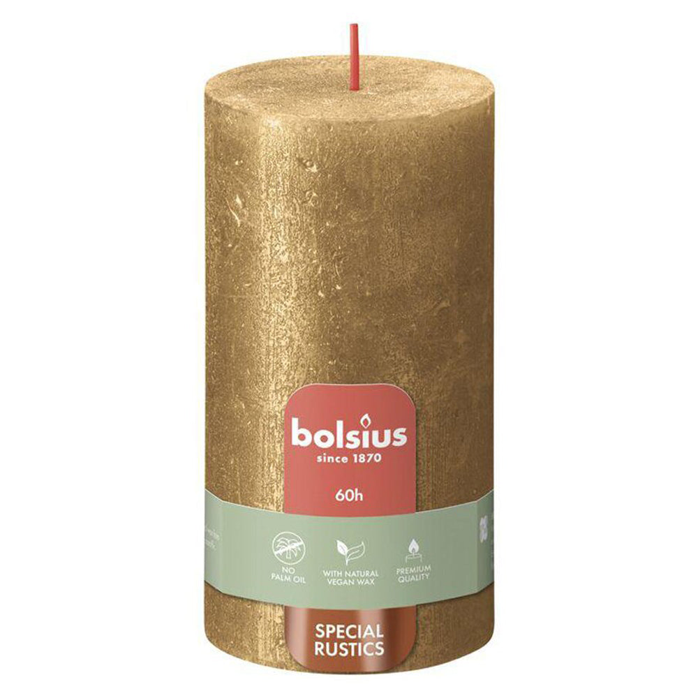 Torne cada ocasião num momento especial! Com a luminosidade das velas pode criar um ambiente de requinte e aconchegante na sua casa. Feitas com amor pelas pessoas e pelo planeta, sem óleo de palma e com extratos 100% naturais, poderá encontrar na nossa coleção Bolsius velas decorativas rústicas de diferentes tamanhos e em várias cores. Devido ao seu pavio em algodão, mantém uma chama perfeita e sem fumo por cerca de 60 horas. A vela pilar rústica dourada, com acabamento brilhante, inspirada na natureza, traz brilho à sua casa e enquadra-se em qualquer decoração.